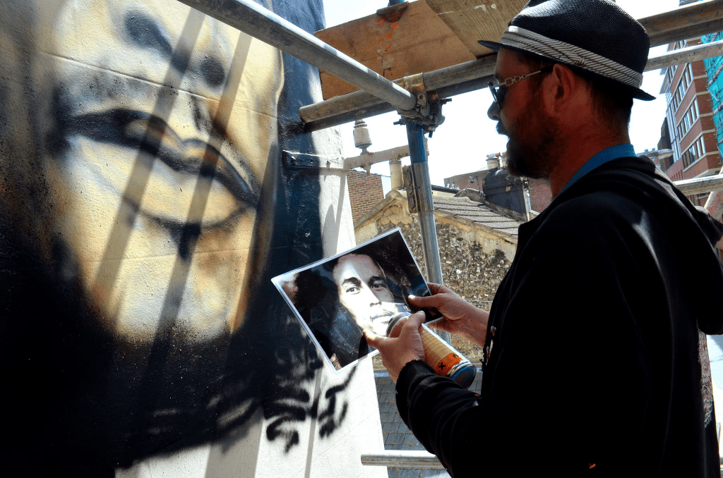 Amongst Req’s repertoire is a spray paint portraiture style that he developed whilst painting album covers on the back of the now defunct Rounder records shop in Brighton.