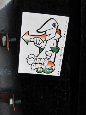 On the 29th Feb I went to the wall on Dover Place, in Ballygunge. I was greeted by Richa, Sweata and a large group of young lads of varying ages. They had come to watch as they all lived in the local community and they had helped to prepare the wall. I had requested some black and white spray paint and some White, Orange, Green and Red emulsion. I got to work.