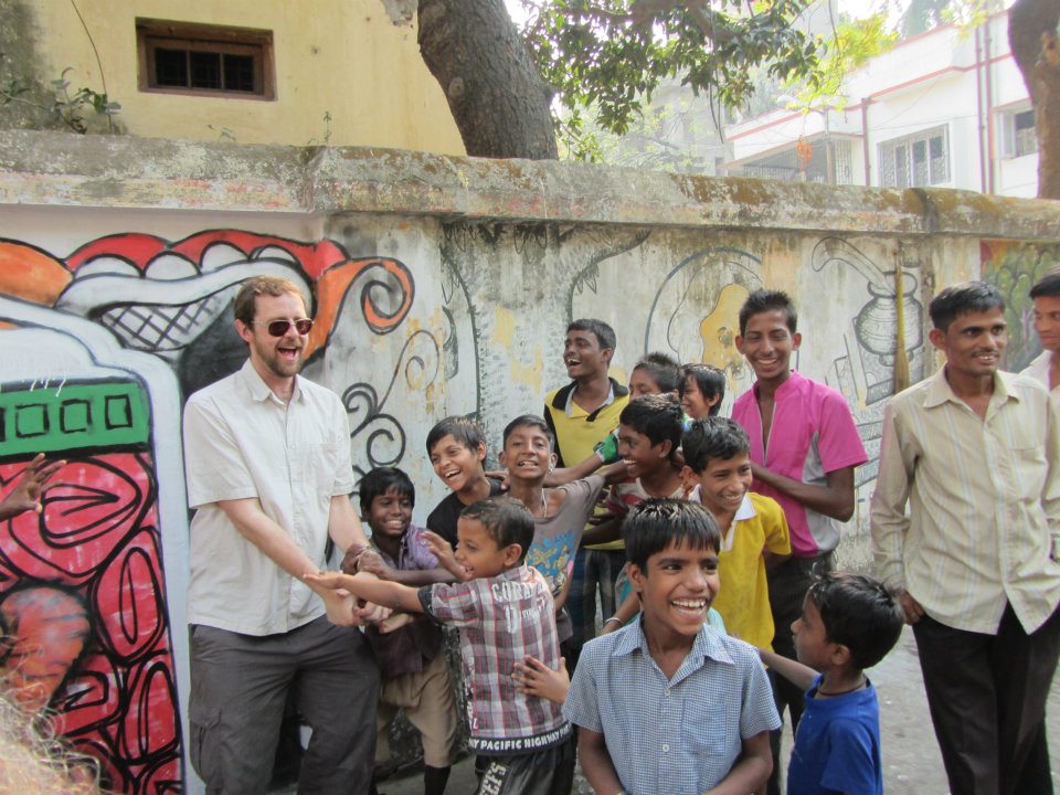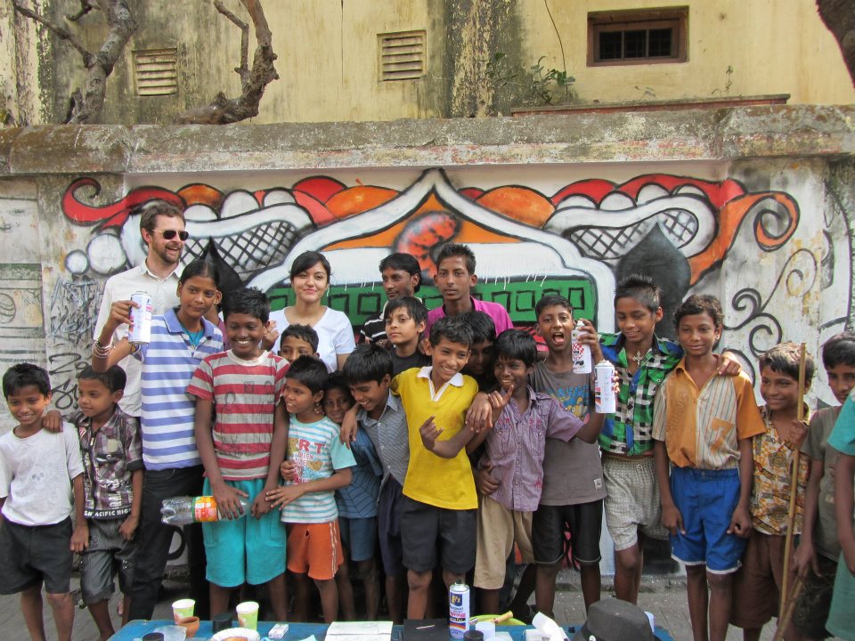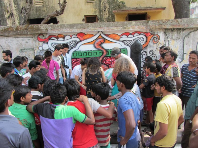 After talking to Sweata about the work that I did in the UK, as a muralist and a youth arts worker,  I was asked if it would be possible to create something in Kolkata. Of course I said ‘YES!’