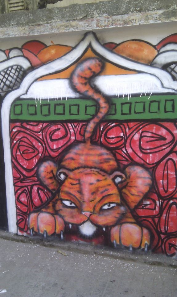 Despite this he offered his help and expertise and arranged for me to paint a wall nearby, situated in an area where there had clearly been a history of wall art. The date was set and I was asked if I could create an image that had an air of Bengali influence and vibrance.