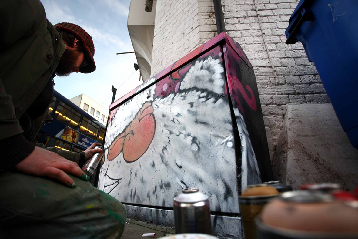 Brighton Green Boxes, Community, Doodles, Grafik Warfare, Inspiration, Media Box painting, Projects, SinbotWoah, 2013 has been increasingly busy, what with the ART SCHISM gallery shop carrying on and numerous projects to kick off the year.